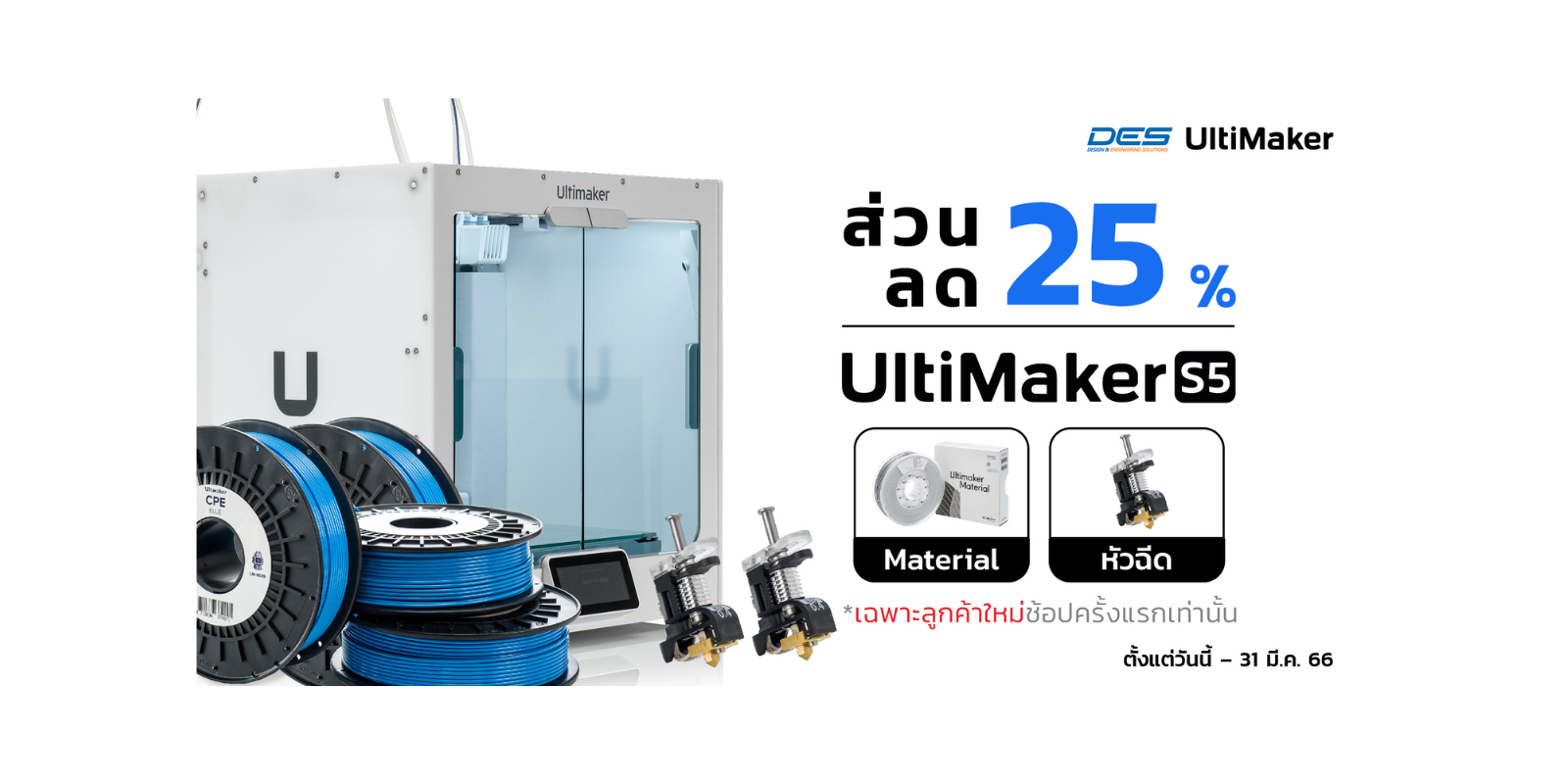 - ต่อที่ 1 : ซื้อเครื่อง UltiMaker S5 ได้รับส่วนลดทันที 25%