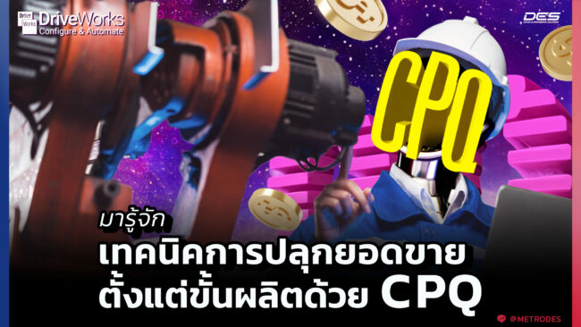 DriveWorks CPQM หรือ CPQ for Manufacturing คือการเพิ่มฟังก์ชั่นในส่วนของ Manufacturing หรือการผลิตเข้ามาด้วย โดยใช้โปรแกรมหลักคือ SOLIDWORKS ในการเชื่อมต่อดีไซน์กับการผลิต ด้วยการสร้างชิ้นงานใหม่จากสิ่งที่ลูกค้าต้องการ