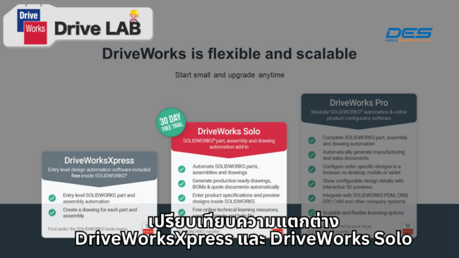 เปรียบเทียบความแตกต่าง DriveWorksXpress และ DriveWorks Solo offer ตัวล่างและตัวกลางของ software DriveWorks DriveWorks Solo จะมีความสามารถใดเพิ่มขึ้นจาก DriveWorksXpress บ้าง