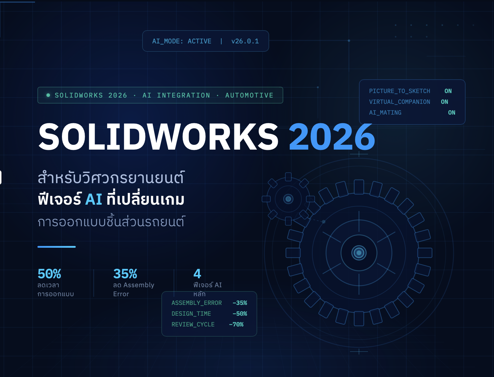4 ฟีเจอร์ AI ใน SOLIDWORKS 2026 ที่วิศวกรยานยนต์ต้องรู้จัก